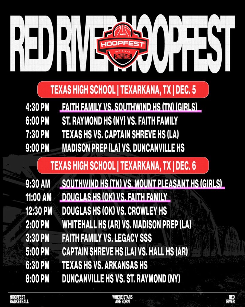 The 5th Annual Red River Hoopfest takes place at the Tiger Center on the campus of Texas High School in Texarkana. This event features top boys’ and girls’ teams from Texas, Arkansas, Louisiana, and Oklahoma. Fueled by a passionate local fanbase, Red River Hoopfest blends hometown pride with elite-level basketball, making it a must-see regional showcase.