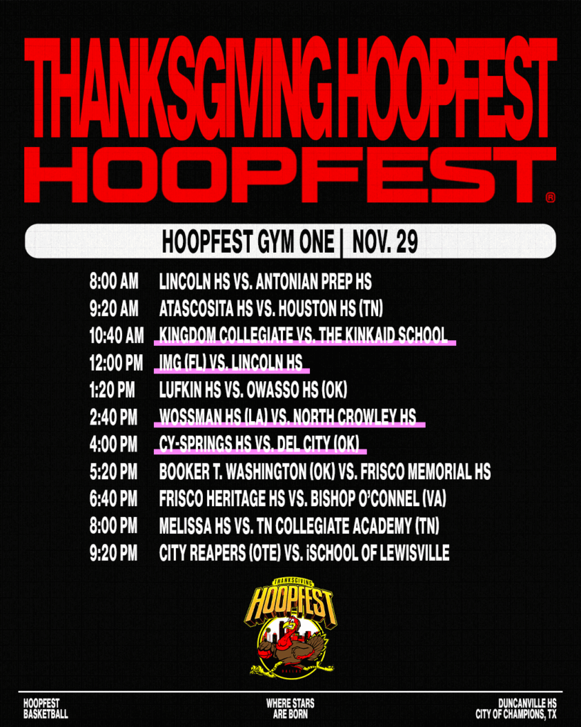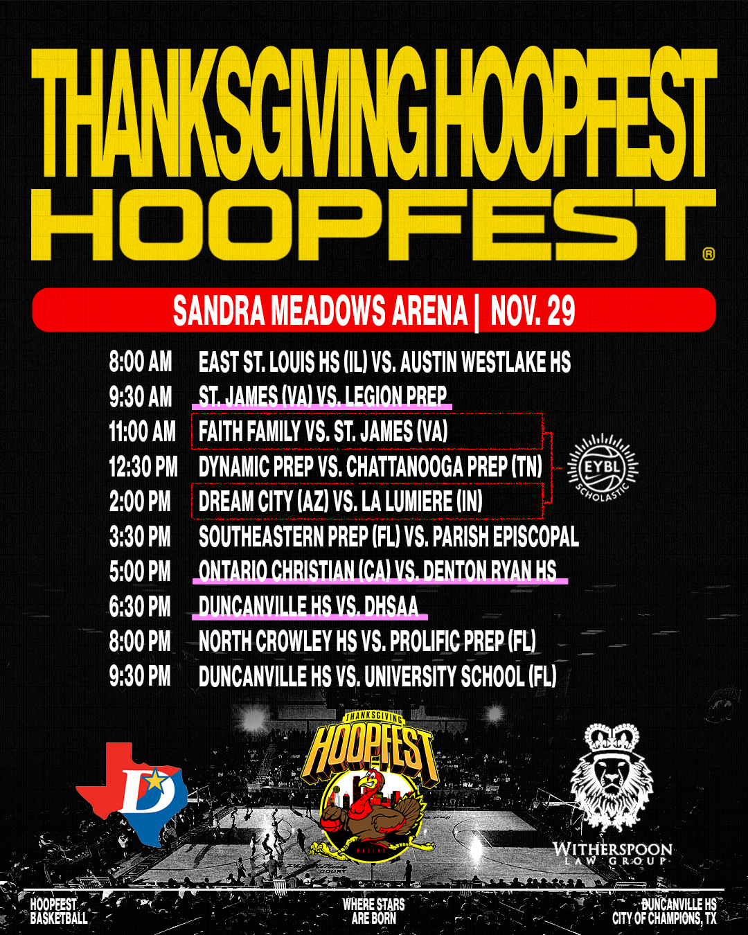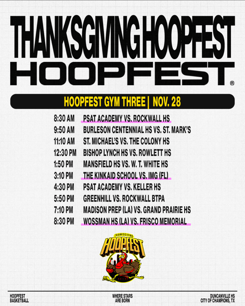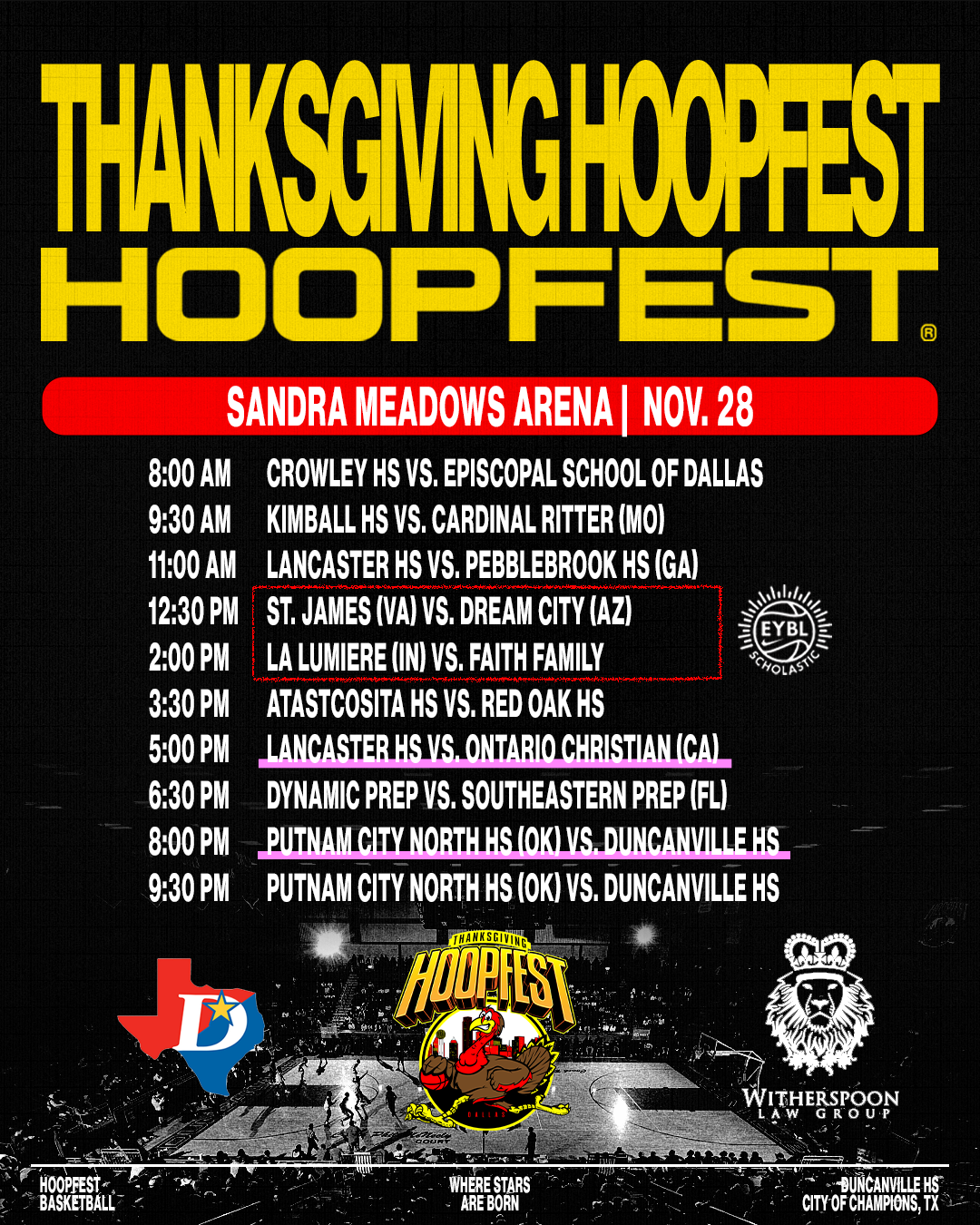 Celebrating its 17th year, the Thanksgiving Hoopfest is widely regarded as one of the premier high school basketball showcases in the country. This event was among the first to spotlight both boys’ and girls’ teams on a national stage. Alumni include NBA stars such as Trae Young, De’Aaron Fox, Cade Cunningham, and Tyrese Maxey. Since the 2023 NBA Draft, over 20 former participants have gone on to be drafted—cementing Hoopfest’s legacy as a launchpad for future professionals.