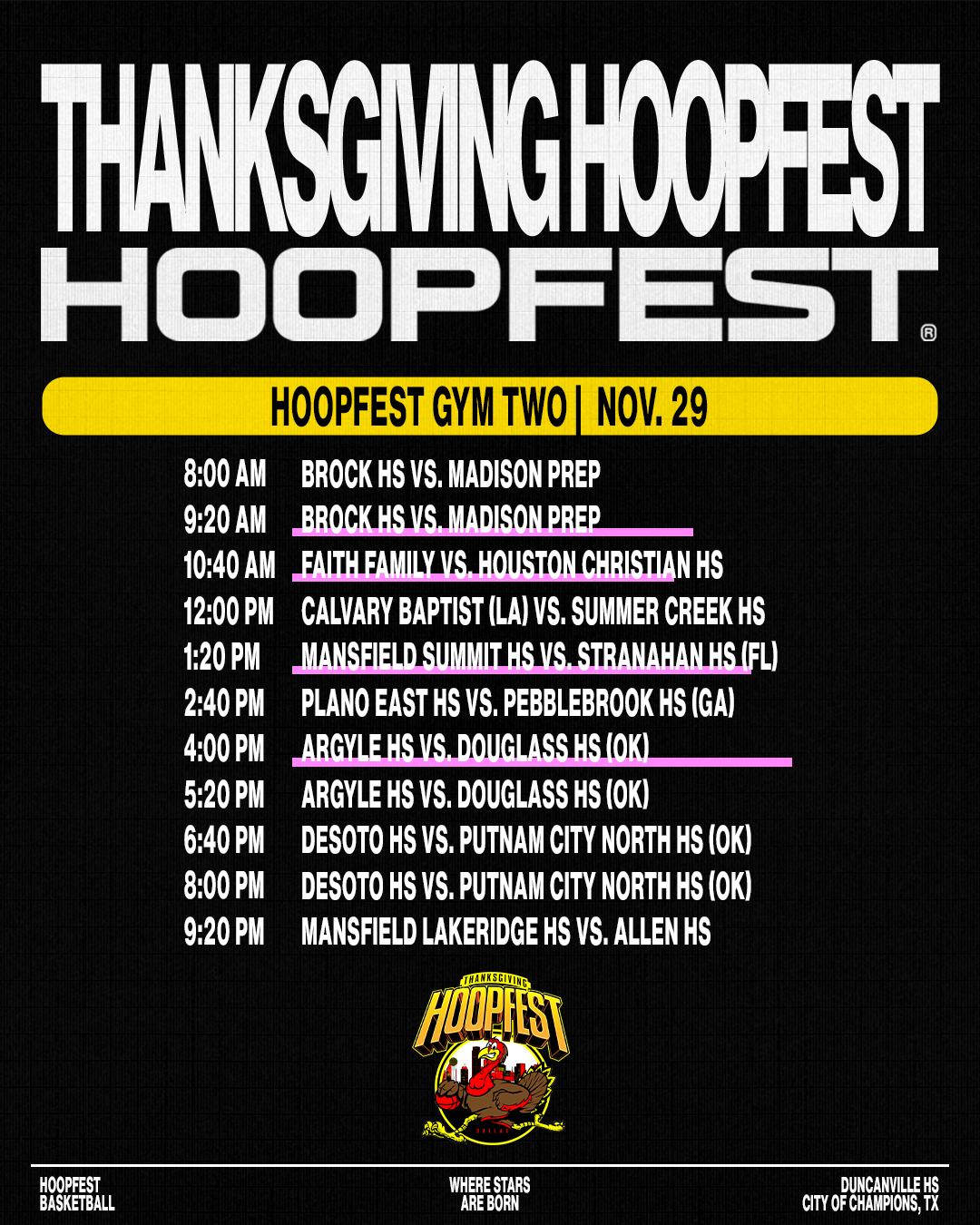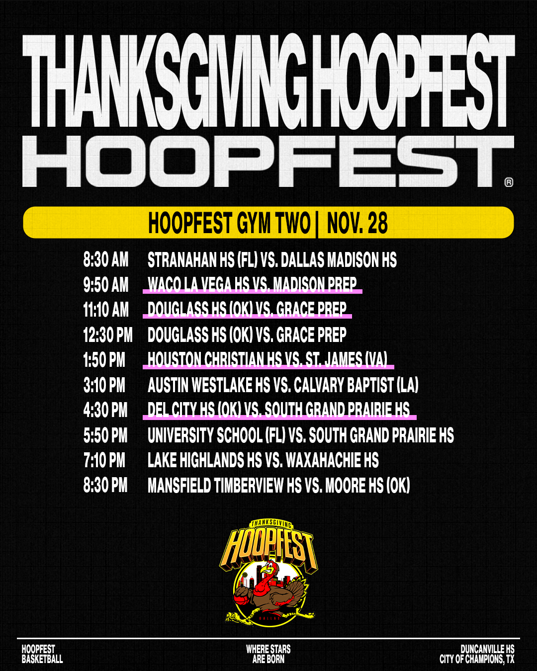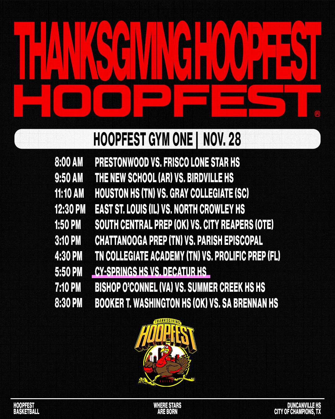 Celebrating its 17th year, the Thanksgiving Hoopfest is widely regarded as one of the premier high school basketball showcases in the country. This event was among the first to spotlight both boys’ and girls’ teams on a national stage. Alumni include NBA stars such as Trae Young, De’Aaron Fox, Cade Cunningham, and Tyrese Maxey. Since the 2023 NBA Draft, over 20 former participants have gone on to be drafted—cementing Hoopfest’s legacy as a launchpad for future professionals.